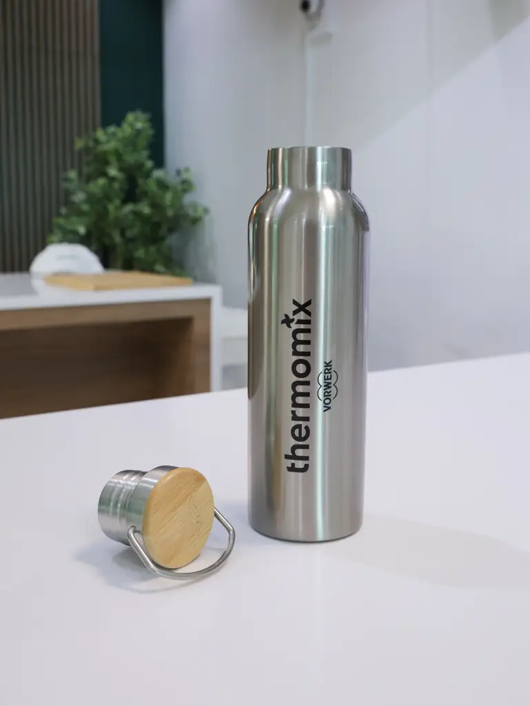 Keep your drinks perfectly hot or refreshingly cold with this sleek Thermomix® stainless steel flask. Designed for everyday use, it combines functionality with natural style. The durable stainless steel body maintains temperature for hours, while the eco-friendly bamboo lid adds a touch of warmth and elegance. Ideal for taking your favourite soups, smoothies, teas or coffees on the go — whether you’re at work, travelling, or cooking with Thermomix®.